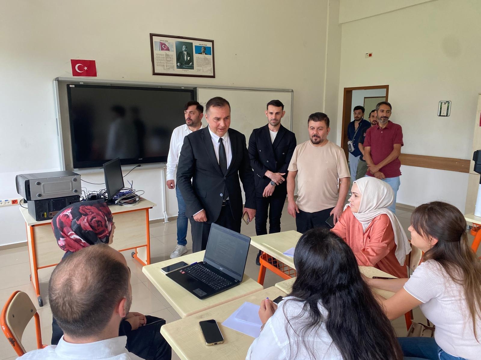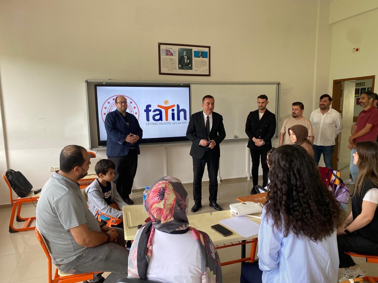 Kalkandere İlçe Milli Eğitim Müdürü Sayın Aydın MERTAYAK, İlçe Milli Eğitim Şube Müdürü Nusret KARAASLAN ile birlikte Şehit Fikret Metin Öztürk Çok Programlı Anadolu Lisesinin ev sahipliğinde İlçe Zümre Alan toplantılarını gerçekleştiren öğretmenlerle bir araya geldi. Ziyaret sırasında öğretmenlerin eğitim-öğretim faaliyetlerini yerinde inceledi, öğretmenler ve idarecilerle görüş alışverişinde bulunuldu. İlçe Milli Eğitim Müdürü Sayın Aydın MERTAYAK, yeni eğitim-öğretim yılı için okul yönetimi ve öğretmenlere başarı dileklerini iletti. Kalkandere İlçe Milli Eğitim Müdürlüğü olarak eğitimde kaliteyi artırmak ve öğrencilerimizin gelişimini desteklemek için çalışmalarımızı aralıksız sürdürüyoruz.
