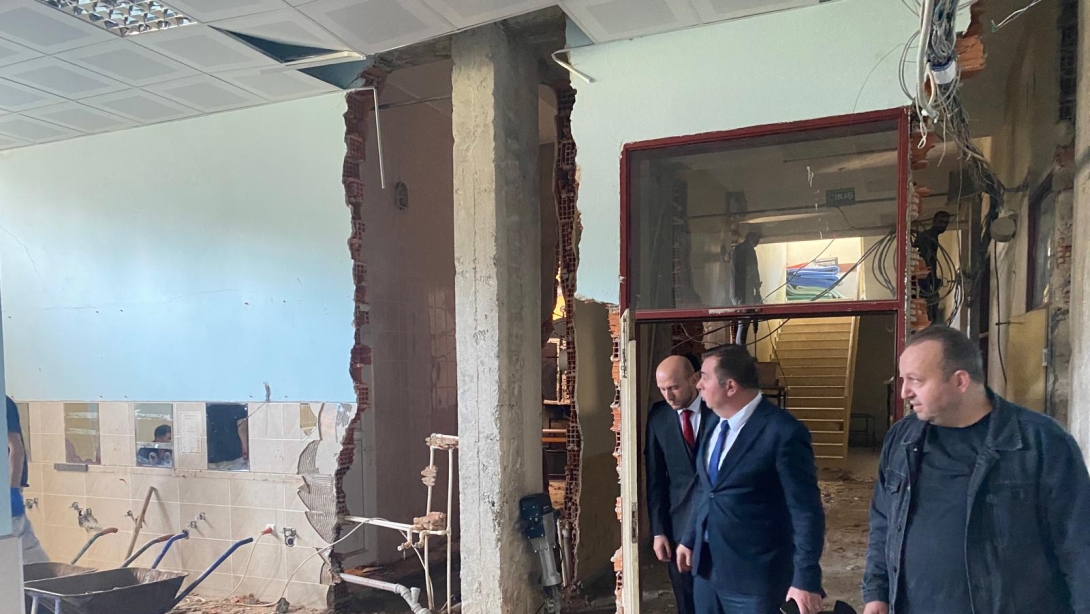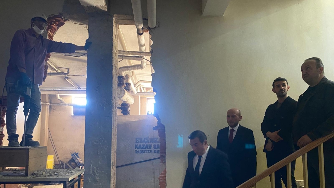 İlçemizde bulunan Atatürk İlkokulu ve Ortaokulu binasında yürütülen deprem güçlendirmesi, doğalgaz tesisatı ve mantolama çalışmalarını, İlçe Milli Eğitim Müdürümüz Sayın Aydın Mertayak ve Şube Müdürümüz Sayın Nusret Barlas Karaaslan yerinde inceledi. Gerçekleştirilen teknik incelemelerde, yapılan çalışmaların plan ve projelere uygunluğu, işin ilerleyişi ve genel işleyiş hakkında yüklenici firma yetkililerinden bilgi alındı. İncelemeler sırasında özellikle çalışan personelin iş sağlığı ve güvenliği önlemlerinin eksiksiz şekilde uygulanması yönünde uyarılarda bulunulmuş, gerekli kontroller titizlikle sağlanmıştır. Yapılan bu çalışmalarla, öğrencilerimizin daha güvenli, konforlu ve modern bir eğitim ortamına kavuşmaları hedeflenmektedir.
